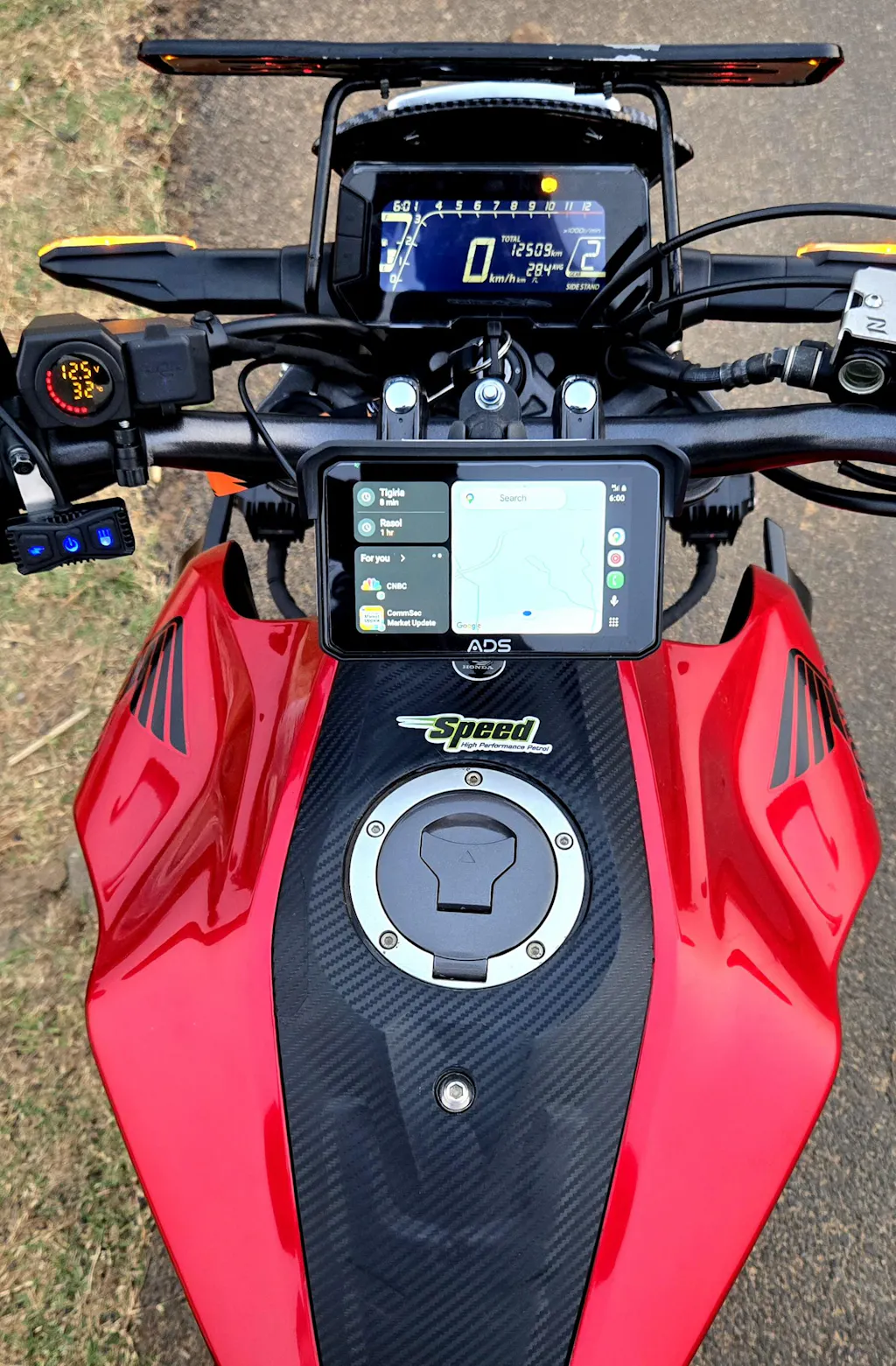 ADS Rover 3.0 Lite is a smart motorcycle display designed to enhance safety, navigation, and riding convenience. Built specifically for Indian riding conditions, it features a 5-inch fully laminated IPS touch display that remains clearly visible even under bright sunlight.
